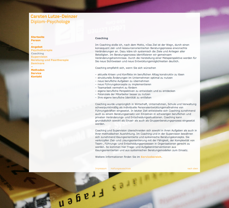 | 17 | Webseitenprogrammierung | Umsetzung eines Webdesigns für Psychologen | HTML CSS u. JS | für Torsten Köchlin, Berlin | |