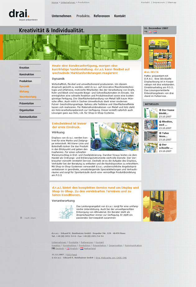 | 16 | Screendesign | Entwurf für die Website von drai display | Screendesign, Entwurf | für CaseOne, Oldbg. | |