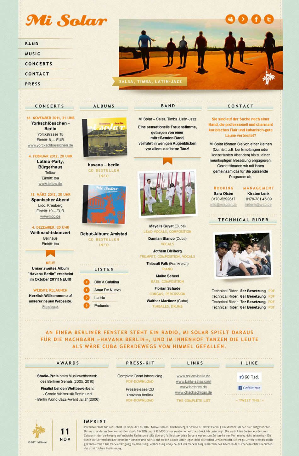 | 15 | Webseitengestaltung | Entwurf für die Latin-Jazz Band Mi Solar | Screendesign, Entwurf | für Maike Scheel | |